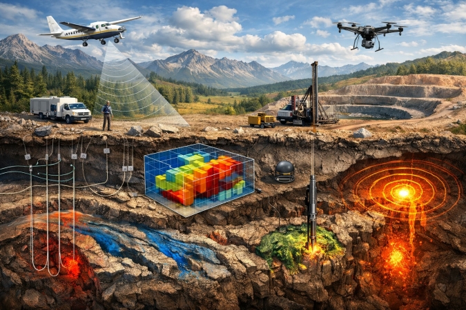 В докладе рассматриваются современные аэрогеофизические технологии как инструмент повышения эффективности прогнозно-поисковых работ на твердые полезные ископаемые при низкой результативности геолого-разведочного процесса. Научная проблема связана с необходимостью сокращения сроков и затрат при сохранении высокой геологической информативности исследований. Показано, что ключевым условием является физико-геологическое моделирование, ориентированное на анализ факторов локализации оруденения и их отражения в магнитном, гравитационном, электрическом и радиометрическом полях. Рассматриваются возможности комплексирования магнитометрии, аэрогравиметрии, гамма-спектрометрии и аэроэлектроразведки, включая частотные и импульсные системы с адаптивной настройкой параметров зондирования. Приведены примеры выявления разрывных структур, погребенных палеодолин, вольфрамоносных гранитов, медно-колчеданных и медно-никелевых объектов, в том числе в условиях слепого залегания. Обоснована роль трехмерной инверсии и методов машинного обучения при интерпретации данных. Показано, что рациональный выбор аппаратно-программного комплекса и авианосителя обеспечивает повышение достоверности прогнозных решений и расширяет ресурсный потенциал изучаемых территорий.