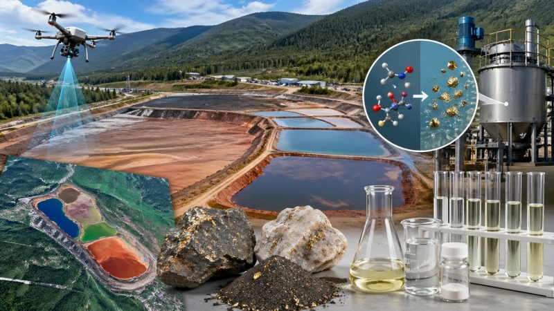 Исследование посвящено разработке бесцианидной технологии извлечения золота из лежалых флотационных хвостов Дарасунского рудника (Забайкальский край) с использованием технологии Albion и нетоксичных комплексообразующих реагентов. Актуальность работы обусловлена необходимостью снижения техногенной нагрузки горнодобывающих предприятий и предотвращения экологических рисков, связанных с эксплуатацией старых хвостохранилищ, содержащих устойчивые цианидные соединения и мышьяк. Проведен анализ состояния хвостового хозяйства с применением дистанционного зондирования Земли, спектральных водных индексов и геоинформационного моделирования, что позволило выявить рост площади водной поверхности и потенциальную опасность аварийного перелива дамб. Минералого-геохимическое исследование хвостов показало наличие тонковкрапленного золота, связанного с сульфидными минералами-хозяевами. Для интенсификации извлечения применены сверхтонкое измельчение, атмосферное окислительное выщелачивание озоном и последующее выщелачивание бинарной системой тиомочевина–глицин в кислой среде с перекисью водорода. Получено извлечение золота до 86,7 %, что значительно превышает эффективность традиционного цианидного выщелачивания. Разработанный подход повышает экологическую безопасность переработки техногенного сырья и имеет практическую перспективу промышленного внедрения.