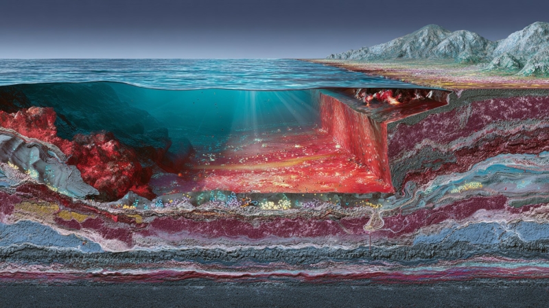 Исследование рассматривает условия формирования железистых кварцитов раннего докембрия, их геохимические особенности и связь с древними геодинамическими процессами. На примере Костомукшского зелёносланцевого пояса в Карелии показано, что бифы типа Алгома образовывались в осадочных бассейнах океанических плато под влиянием гидротермальной активности и локальной оксигенации морской воды. Цирконовый анализ позволил установить возраст пород — около 2,87 млрд лет — и проследить этапы их метаморфизма. Геохимические данные, включая положительную европиевую аномалию, подтверждают гидротермальное происхождение вещества. Сопоставление с архейскими афиолитами и субдукционными комплексами показало, что уже в мезоархее действовали все основные типы тектонических обстановок: спрединг, субдукция, коллизия и внутриплитный магматизм. Формирование и преобразование железистых кварцитов отражает ранние этапы эволюции литосферы и становления кислородной атмосферы Земли.