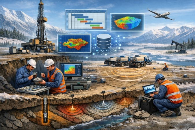 Отдельно рассматривается геоинформационный подход к интеграции разнородных данных и создание собственной геоинформационной платформы, обеспечивающей полный цикл работ — от ввода и редактирования данных до мониторинга полевых процессов. Также показана роль инструментов на основе методов машинного обучения для анализа архивных и неформализованных документов, что расширяет возможности использования накопленного геологоразведочного опыта.
