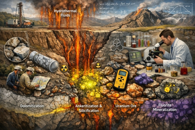 В докладе рассматриваются результаты многолетних исследований гидротермальных и метасоматических процессов, сопровождающих формирование урановых месторождений, с акцентом на карбонатные вмещающие породы. Показано, что процессы метасоматического преобразования закономерно предшествуют рудоотложению и формируют характерную зональность изменений пород.
