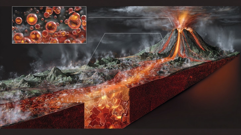 При поступлении более глубокой магмы со стабильными сульфидами запускаются процессы магмамиксинга и диффузионного перераспределения меди между включениями и окружающим расплавом. Одновременно дегазация серы вызывает осаждение тонких сульфидных фаз в приповерхностном очаге.
