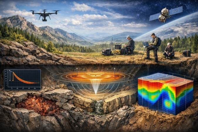 В докладе представлены результаты опытно-методических и ревизионных геофизических исследований, выполненных на ранних стадиях геологоразведочных работ на объектах Южного Урала и Витимского урановорудного района. Рассматриваются задачи выявления гипергенной марганценосности и картирования палеодолинных структур, контролирующих урановое оруденение. На примере участков Убайдулинский, Мемеля, Тетрагского месторождения и Мунсинской площади обоснована необходимость комплексного подхода к геофизическим исследованиям. Применены методы площадной и профильной магнитной и радиометрической съёмки, электроразведки, включая метод вызванной поляризации и электромагнитное зондирование методом переходных процессов, а также инверсия данных и геолого-геофизическая интерпретация с использованием космических снимков. Полученные результаты позволили уточнить геологическое строение участков, закартировать границы базальтов и кристаллического фундамента, выделить проводящие зоны и аномалии поляризуемости, приуроченные к продуктивным толщам и палеодолинным заполнениям. Показана практическая значимость комплексной геофизики для снижения неопределенности интерпретации и повышения эффективности последующих стадий работ.