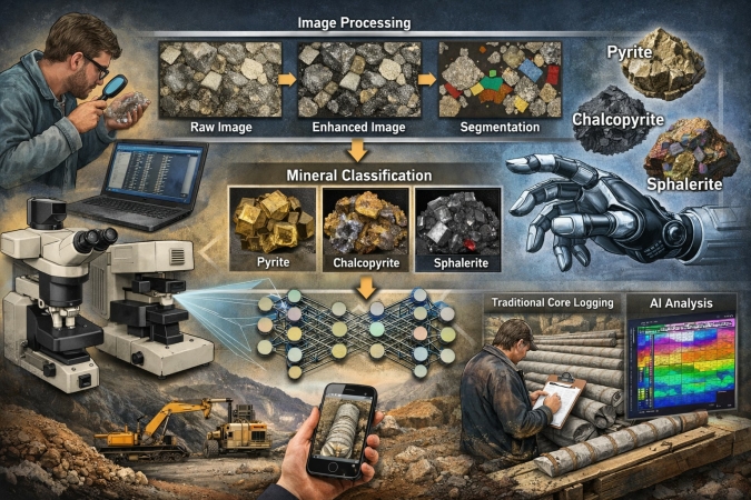 В докладе представлены результаты разработки и апробации самописной модели машинного обучения для распознавания сульфидных минералов на основе изображений геологических образцов. Исходные материалы были получены на месторождении Малинское и использованы в качестве обучающей выборки, сформированной в условиях ограниченного объёма данных. Работа носит преимущественно демонстрационный характер и ориентирована на оценку принципиальной применимости методов машинного зрения в задачах минералогического анализа.