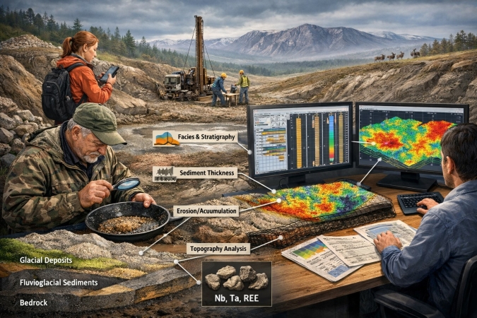 Методика была опробована на лапаритовых редкометальных россыпях периферии Ловозерского массива, приуроченных к гляциальным и флювиогляциальным отложениям. Территория исследования была дискретизирована на элементарные ячейки, для которых использовались данные цифровой модели рельефа, литологии, мощности осадочного чехла и содержаний полезных компонентов. В качестве рабочей гипотезы принято, что экспертный прогноз формируется через выделение ключевых факторов, их полуколичественную оценку и определение оптимального пространственного соотношения.